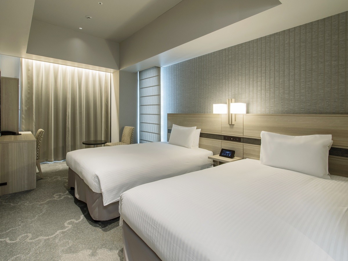 컴포트 트윈룸 – 흡연 컴포트 트윈룸은 27㎡~31㎡(약 290~333평방피트)입니다. 폭 120cm의 시몬스 고급 침대 2개가 구비되어 있습니다. 폭 110cm의 엑스트라 베드를 추가하여 최대 3인까지 숙박 가능합니다. 욕실과 화장실이 분리되어 있어 가족이나 그룹 여행객에게 추천합니다.